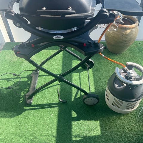 Weber Q3200 gassgrill med gassflaske + trekk + brannslukker – meget pen! 🔥