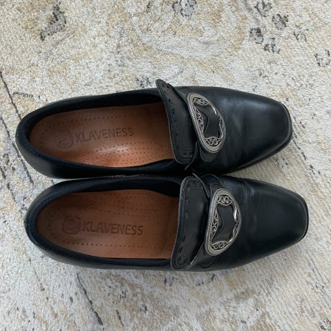 Nydelige Klaveness bunadsko str 4,5 (37,5) selges for 1100kr. Nypris i dag er 2699kr. Ble kjøpt til konfirmant som har vokst ut av de.