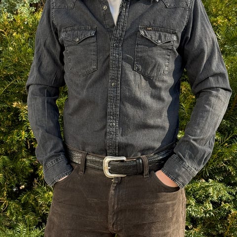 Klassisk chambray-skjorte som fungerer hele året — åpen over en T om sommeren eller under en jakke om høsten. Modell 180 cm. Kjøper du flere plagg gis det bundlerabatt.