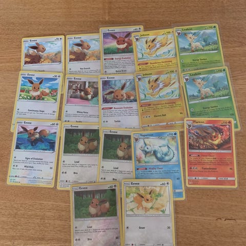 Pokémon EX / Full Art / Trainer kort selges – Eevee EX, Crobat V, Rowlet m.fl.