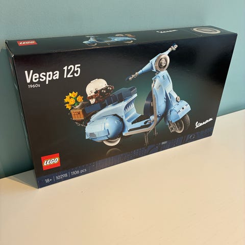 Lego Vespa 10298. Original eske, bruksanvisning og ekstra deler medfølger.