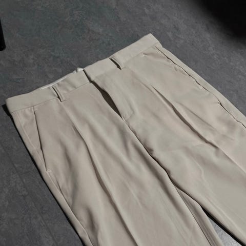 Mørkeblå/grå dressbukser med rett passform og clean look. Enkle å style, funker både casual og litt mer dressed.
