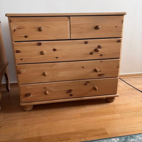 Kommode i heltre furu i god stand. Jeg tror fra 90-tallet til tidlig 2000-tall. Kan hentes i Oslo eller Drammen. Leveres mot et lite gebyr. Send et bud