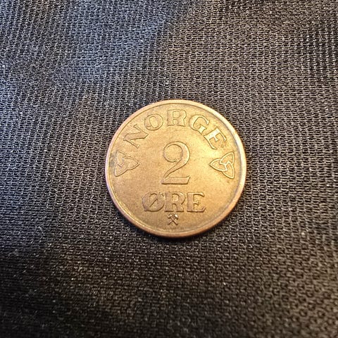 Danmark 2 kroner mynt med hull i midten. Forsiden har påskriften «2 KRONER DANMARK» med dekorativt mønster. Baksiden viser kronemotiv og våpenskjold. Egner seg for samlere av danske mynter eller som objekt for numismatisk interesse.
