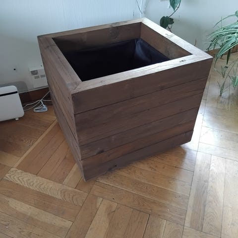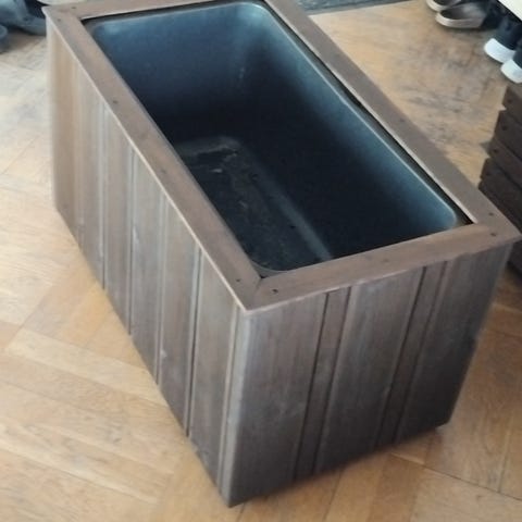 HJEMMELAGET BLOMSTERKASSE LAGET AV IMPREGNERT MATERIALE MED PLAST BALJE FERDIG BEISET KLAR TIL BRUK