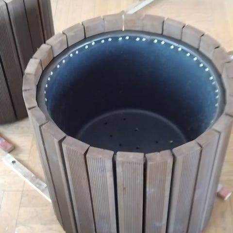 HJEMMELAGET BLOMSTERKASSE LAGET AV IMPREGNERT MATERIALE MED PLAST BALJE