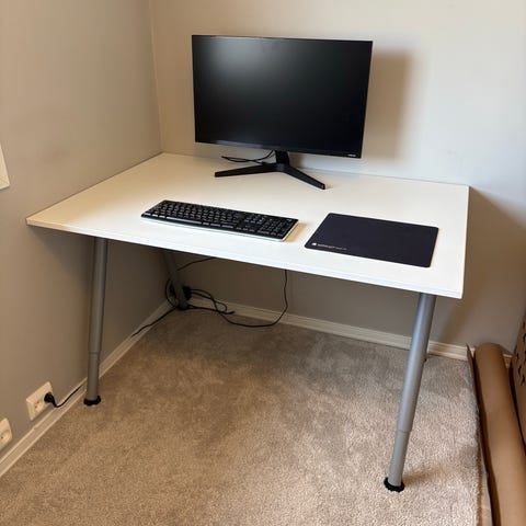 Hjørneskrivepult (uten innholdet) med god plass selges