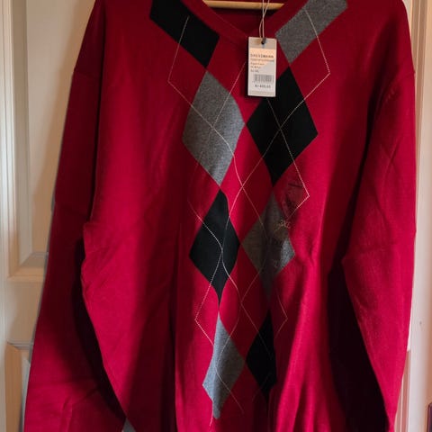 ✨️Selger en pent brukt rød/burgunder strikkegenser med halv glidelås (half-zip). Dette er en klassisk modell som passer perfekt både til hverdags og finere anledninger over en skjorte.