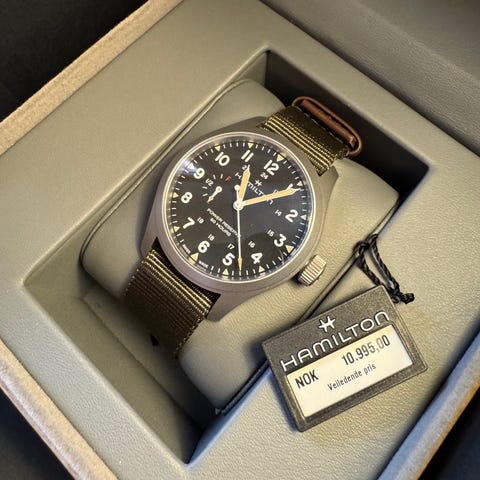 Hamilton er et anerkjent sveitsisk merke, og Khaki Navy-serien er spesielt populær blant dem som ønsker en robust automatisk klokke med sporty uttrykk og god kvalitet.
