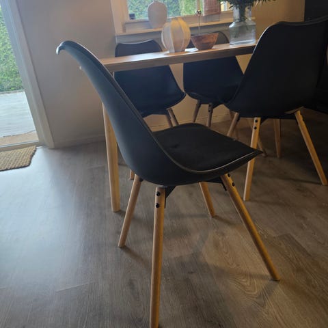 Stolene er brukt, så det finnes normal slitasje, men de er fortsatt fullt brukbare og ser fine ut.