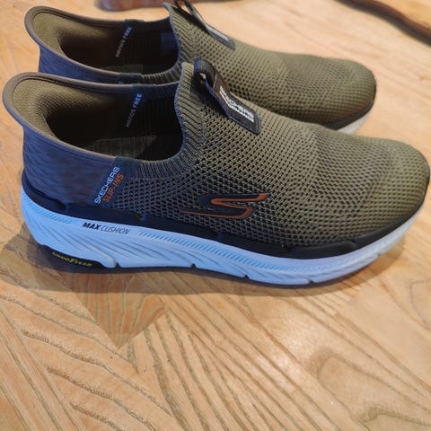 Skechers sneakers/joggesko aircooled archft i størrelse 43. Skoene er i svart farge med overdel i tekstil/mesh og fleksibel yttersåle i syntetisk materiale. Modellen er slip-on uten lisser, med hemper foran og bak for enklere av- og påtaking. Passer til hverdagsbruk og lett aktivitet.
