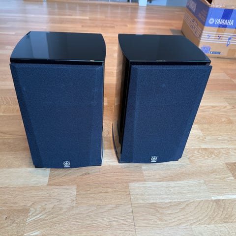 Yamaha høyttalersett 3.1 i svart. Består av to fronthøyttalere, én senterhøyttaler og én subwoofer.