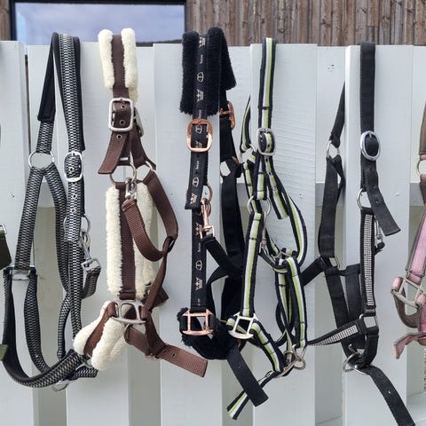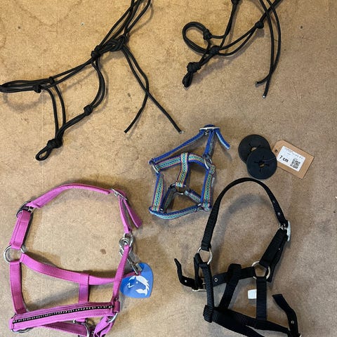 Pent brukte grimer i cob. Flertallet ubrukt, fortsatt med lapp på.
