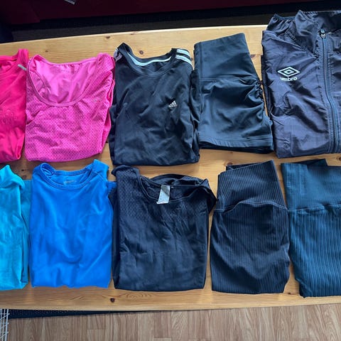 Pakke med treningstights fra Nike og og moods of Norway. Passer xs. Nike dri fit T-skjorte og løpejakke fra Nike i størrelse small.