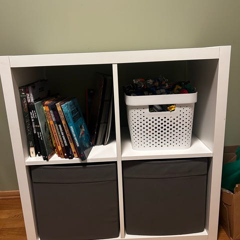 En pent brukt hylle som er allsidig og stilren. Vi har brukt den til leker og bøker som vist på bildet.