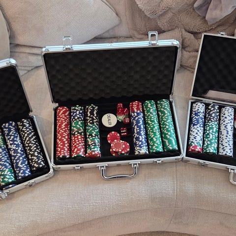 Pokerkoffert med sjetonger og kort