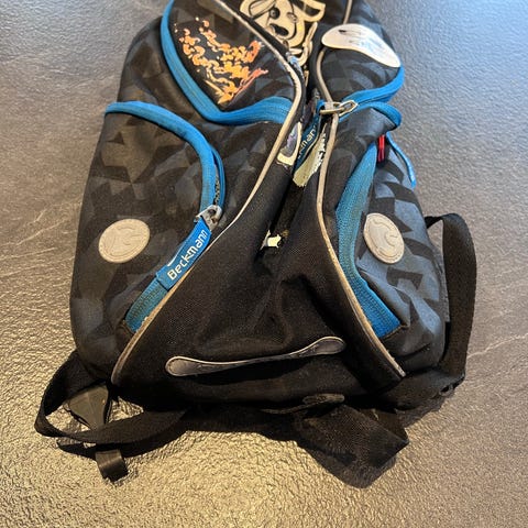 Kaos sekk til barn. Praktiske stropper, veldig fin barnehagesekk. Har en del bruksmerker (se bilde), så kan trenge litt flekkfjerning. Ellers i god stand.