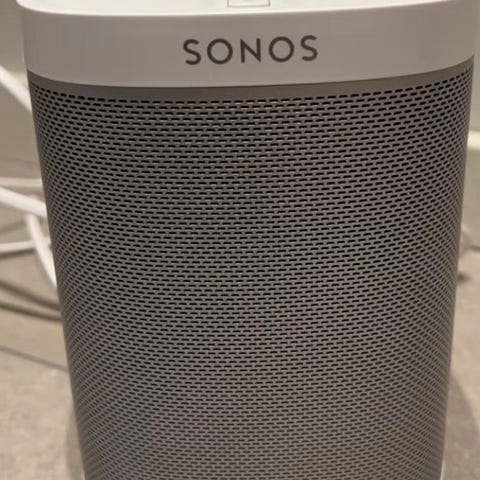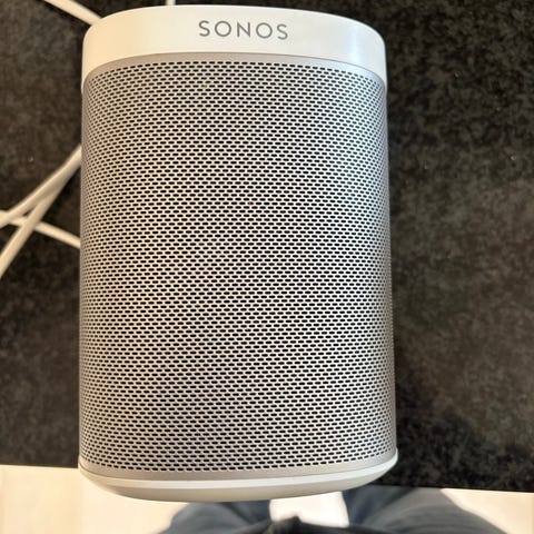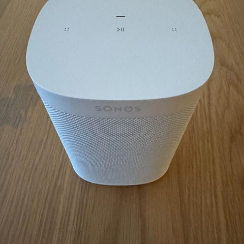 Selger en Sonos Play:1 trådløs høyttaler i hvit utførelse. Pent brukt og knapt synlig slitasje, kun to mindre striper på bakre side slik avbildet. Tilbakestilt til fabrikkinnstillinger.