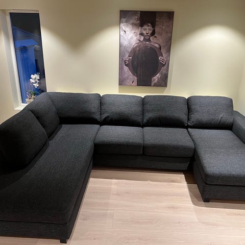 Sofaen fremstår som pent brukt uten synlige skader. Fast og god sittekomfort.