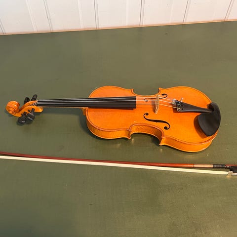 Gammel 4/4 fiolin selges billig. Fiolinen er ikke noe spesiell, og jeg vet ikke stort om den. Jeg fikk kjøpt den billig gjennom Lhmr. Kulturskole en gang for lenge siden.