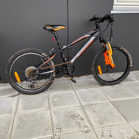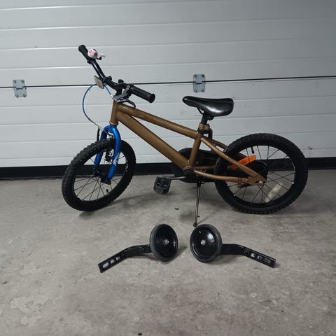 Bremsen bak henger noe på, sikkert en kvikk fiks men siden guttungen har vokst fra sykkelen så selges den billig slik den er.