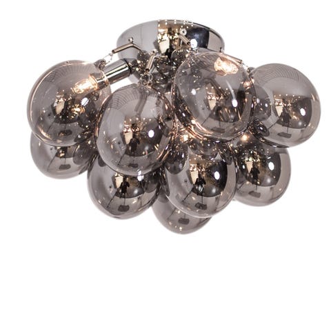 Gross plafonden fra By Rydéns er en eksklusiv taklampe som skaper en herlig stemning i rommet. Glasskulene som utgjør lampeskjermen, former en elegant og iøynefallende design. Med sin røkfargede nyanse, gir plafonden et sofistikert uttrykk som passer perfekt til et moderne interiør.