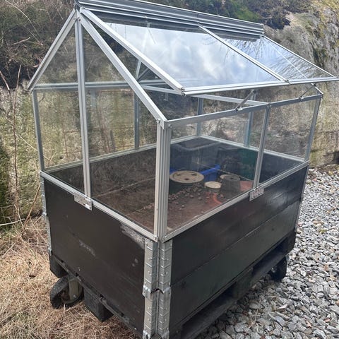 Et par av glassene mangler en bitteliten del på den spisse delen. Ikke synlig med rammer på ferdigmontert drivhus.