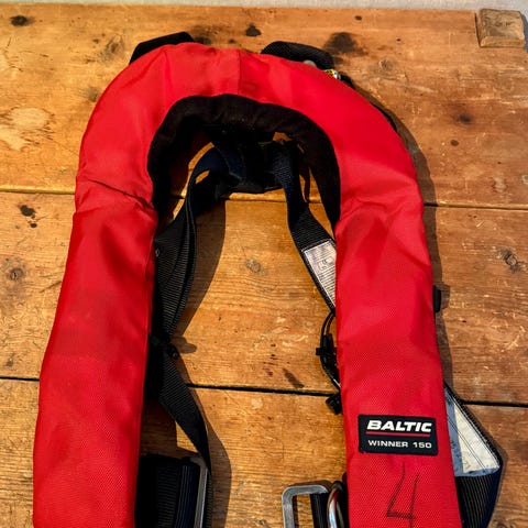 Hvis vesten har blitt våt tørkes den raskest hengende på en kleshenger. Vask vesten i lunkent vann og et mildt håndvaskemiddel.