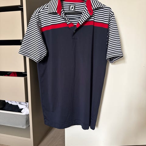 Peak Performance poloskjorte i størrelse XL for herre. Skjorten er i marineblå farge med hvite paneler og Peak Performance-logo langs skulder og ermer. Laget av 100 % polyester med glatt, lett og pustende materiale som egner seg godt til fritid og ulike aktiviteter. Klassisk polokrage med knappestolpe i kontrastfarge. Korte ermer og rett fasong. Vask- og vedlikeholdsinformasjon står på innsydd merkelapp.
