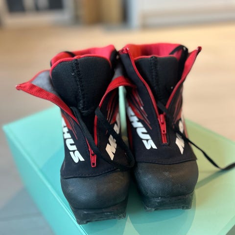 Madshus langrennsstøvler for barn i svart farge. Støvlene har overtrekk som dekker lissene og gir ekstra beskyttelse mot snø og fukt. Myk polstring rundt ankel og hæl for bedre komfort. Passer til klassisk langrenn for barn. Mye bruk igjen i disse.