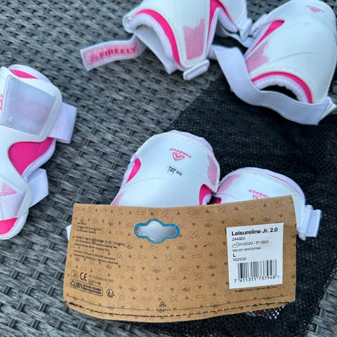 Beskyttelsesutstyr til rulleskøyter i grå og svart farge. Settet består av flere deler med polstrede skåler og justerbare stropper. Utstyret er egnet som beskyttelse ved bruk av rulleskøyter og lignende skøytesport, og dekker typisk knær, albuer og håndledd avhengig av størrelse og passform.