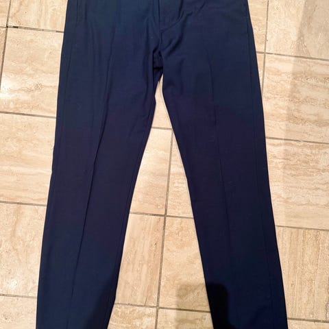 Dressmann Slim Fit dressbukse for størrelse 27/30. Buksen er svart og laget i polyester. Modellen har beltehemper i linningen, gylf med glidelås og knapp, samt lommer foran og bak. Egner seg til bruk som penbukse eller del av dress i formelle og semi-formelle sammenhenger.