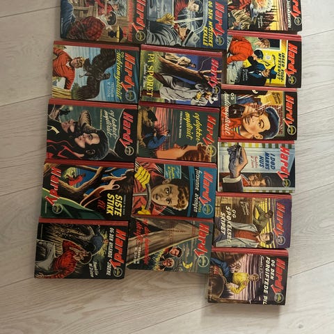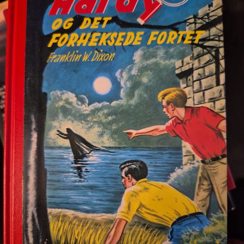 Hardy-guttene og terroristbanden bok. Innbundet utgave med illustrert forside og rød rygg. Krimbok for barn og ungdom i Hardy-serien, norsk utgave. Nummer 82 i serien, forfatter Franklin W. Dixon.