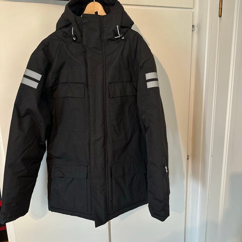 Flott jakke til sene kalde kvelder i Russe tiden. Pent brukt og selges som den er. Svart str M.