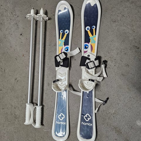 Ski og staver til de minste. Trenger ikke skisko til disse skiene.