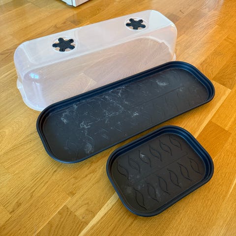 I god stand, men trenger en liten vask. Følger med små potter til planting av frø.
