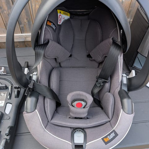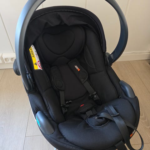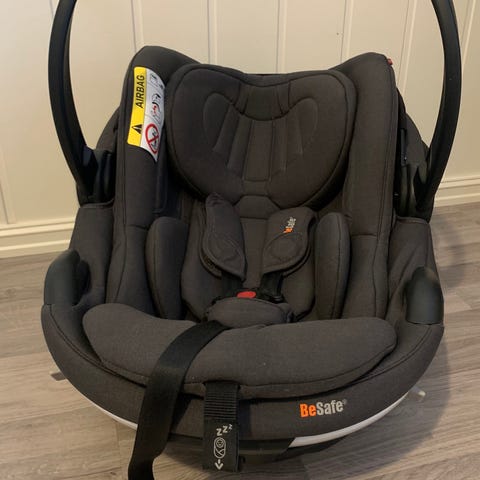 Selger en komplett BeSafe Izi Go Modular babystol med tilhørende base. En trygg og praktisk løsning som gjør det enkelt å klikke stolen inn og ut av bilen.