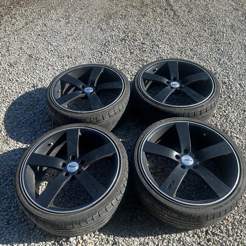Det sitter piggfrie vinterdekk på, to av de er kantslitte. Felgene er ikke strøkne men ikke stygge kantkjøringer.