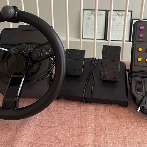 Settet består av ratt, pedalsett og separat kontrollpanel med mange programmerbare knapper og brytere. Rattet har flere funksjonsknapper og en dreieknapp på fronten. Kontrollpanelet har joystick, rullehjul og fargekodede knapper for ulike funksjoner i spill.