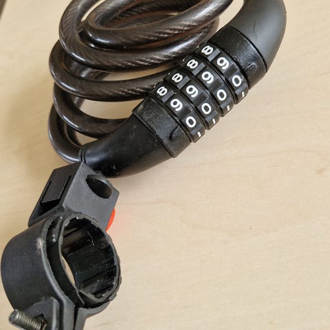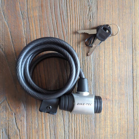 Trelock sykkellås vaierlås med nøkkel. Låsen består av en vaier med plastbelagt stålkabel og låsehode i plast og metall. Nøkkellås med to medfølgende nøkler. På emballasjen vises FIXXGO-feste som kan monteres på sykkelramme eller setepinne, og vaieren kan festes rundt rammen når sykkelen låses. Egnet til sikring av sykkel ved kortere parkeringer der en fleksibel vaierlås er praktisk.