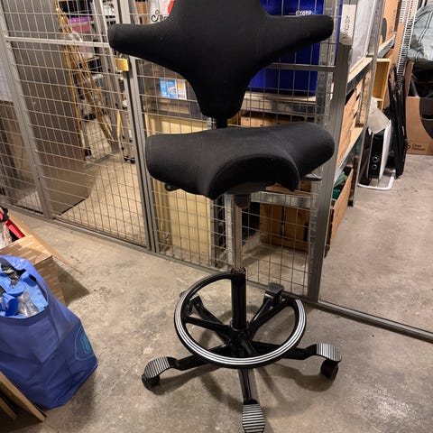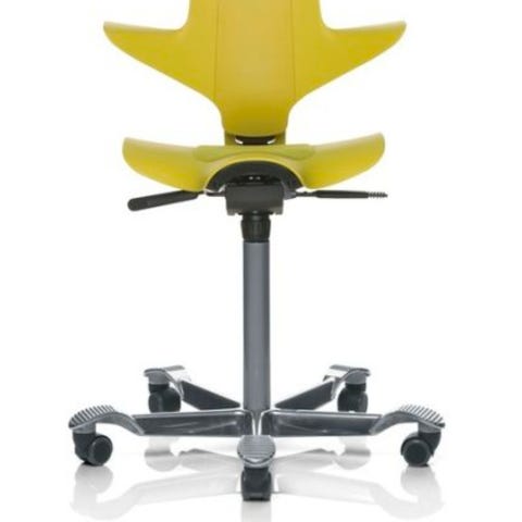 Stolen er designet av Peter Opsvik, og er laget for å kunne variere sittestilling fra vanlig høyde til nær stående, forlengs, sideveis og baklengs.