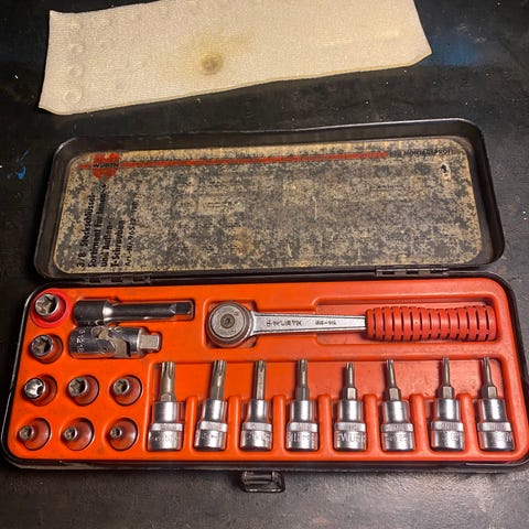Bahco pipesett i metall med skralle og forlenger. Settet leveres i rød metallkoffert merket Bahco, Made in Sweden. Inneholder flere piper i ulike størrelser, skrallehåndtak, forlengere og diverse smådeler/fester. Håndtakene på verktøyene er i grønn plast. Egnet til generelt mekke- og vedlikeholdsarbeid på kjøretøy, maskiner og annet utstyr der det er behov for pipesett.