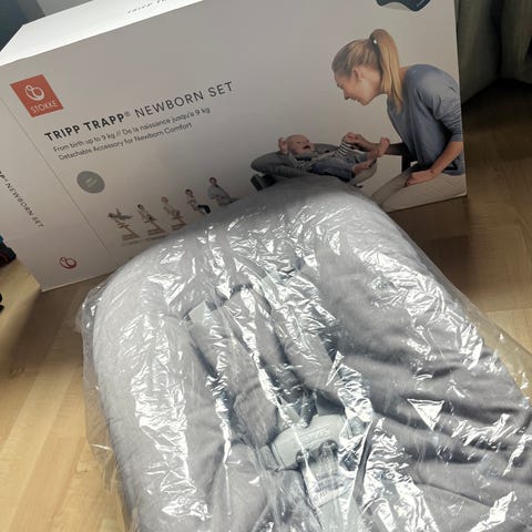 Praktisk newborn sete som festes på Tripp Trapp stolene til Stokke. Har med bøyle hvor leke kan henges på. Nyvasket og fremstår som ny, med original embalasje.