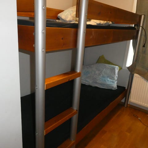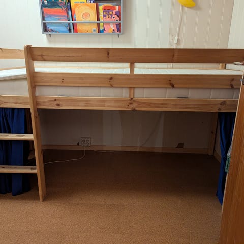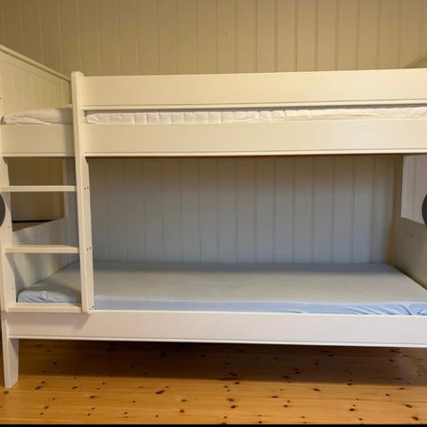 Lite brukt køyeseng for glade gjester fra VidaXL med madrasser fra Jysk, fremstår som nye uten flekker eller preg av bruk. Heltre furu, passer madrasser 190X75. Gjesteseng her, brukt kanskje fire ganger. Selges på grunn av ommøblering av kontor. OBS. har små skruehull i front fordi vi monterte den galt første gang. Anbefaler å frakte den hel, den er lett og her er det møbelheis og store dører rett ut. Ny pris 3189.- pluss frakt.