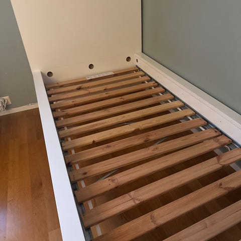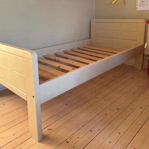 90x200. Pent brukt og i god stand. Se info i link: https://www.jotex.no/jotex/girona-barneseng-90x200-cm/1559636-01