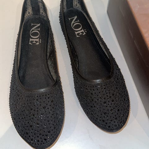 & Other Stories ballerinasko i størrelse 40. Skoene er sølvfargede med dekorative detaljer på overdelen. Flat såle og avrundet tå gir et enkelt og klassisk uttrykk. Passer til hverdagsbruk eller til anledninger der man ønsker et par enkle, lave sko i nøytral farge.