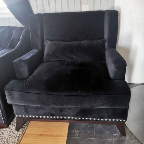 Ingen hull eller skader som jeg har sett. lite små flekker her og der som kan vaskes bort 😊 kan komme og se på sofa før kjøp :)