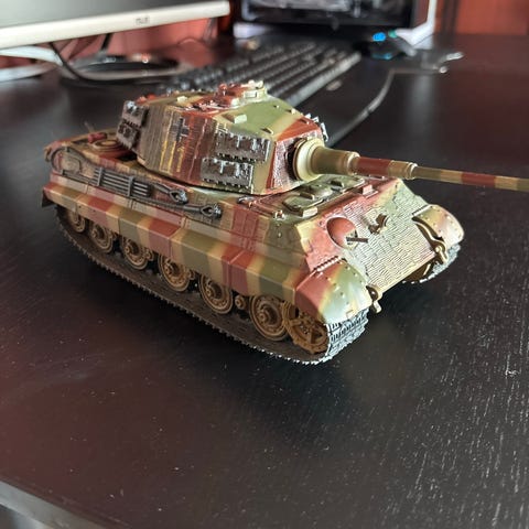 Selger Tank German Tiger i Battle Tank. Smale 1/24 elektrisk (batterier) men fjernkontroll mangler. Se bilder det som mangler