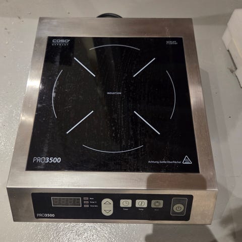 Fin induksjonsplate inkludert wok. Følger med plugg med bryter. Passer fint både på restauranter og hjem, hvis man for eksempel vil lage middag rett på spisebordet. Kan hentes i Oslo etter avtale.