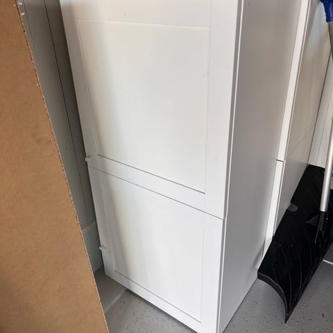 Gir bort 2x separate skapseksjoner, som kan stå over garderobeskap, eller fungere for seg selv. Den ene har tre skuffer og den andre har hylle og en skuff. Gis bort samlet. Må hentes i 4. etasje uten heis